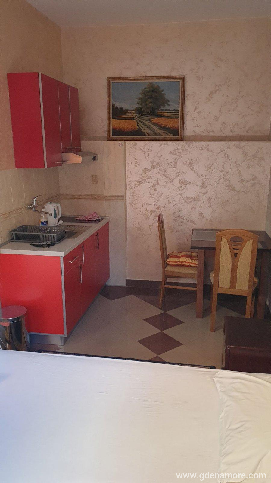 We offer three apartments with perfect sea views, fully equipped. The apartments are 25m2, 30m2 and 40m in size. Distance from the beach is 250 meters or 3 minutes walk. Shop, pharmacy, discos, numerous beaches and cafes are only 200m away from the apartment. All three accommodations have a beautiful large common terrace with a place for lunch and rest, also under the terrace there is a garden where the youngest members of the apartment can have fun. Everything in the palm of your hand!